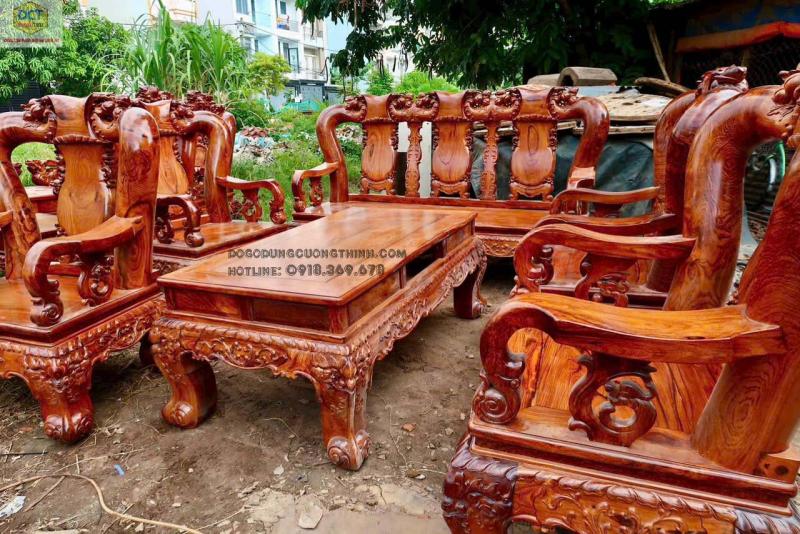 Bộ salon cột 14 chạm đào gỗ cẩm lai PD148CM