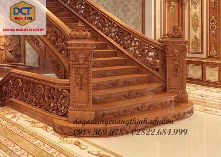 Cầu thang gỗ CT02GD thu hút bởi sự sang trọng, lịch lãm hài hòa với không gian nội thất biệt thự làm toàn bằng gỗ quý. Với giá thành tương đối cao so với các vật liệu thường sử dụng khác, nhưng đắt sắt nên miếng bởi những thiết kế cổ điển bằng gỗ quý luôn khiến người ta phải choáng ngợp với màu sắc, vật liệu, cách trang trí vượt trội.
