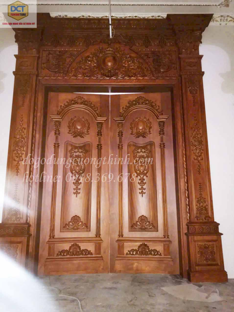 Bộ cửa cổ điển 2 cánh – tuyệt phẩm nghệ thuật gỗ gõ đỏ